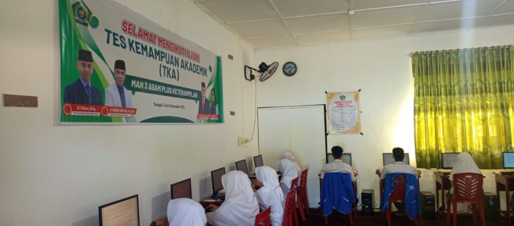 Agam, 3 November 2025 — Suasana pagi di MAN 3 Agam Plus Keterampilan dipenuhi dengan semangat belajar dan keseriusan para peserta didik. Hari ini, madrasah tersebut resmi melaksanakan Tes Kemampuan Akademik (TKA) hari pertama sesi 1, yang diikuti oleh 22 orang peserta. Ujian berlangsung dengan lancar, tertib, dan penuh disiplin.